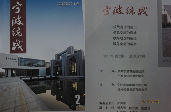 日前寧波賽爾集團和紅光控股集團共同出資協辦寧波市委統戰部主辦的《寧波統戰》雜志?!秾幉ńy戰》是我市統一戰線的核心期刊,是統戰宣傳的窗口,信息交流的園地,聯絡聯誼的橋梁,服務全局的幫手。作為民建會員企業,賽爾集團以能為寧波統一戰線領域的宣傳工作貢獻綿薄一份之力為榮。