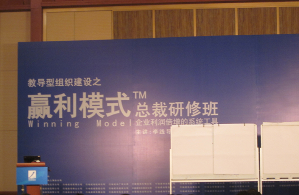 2011年8月19日-21日,賽爾集團(tuán)組織參加了由行動(dòng)成功國際教育集團(tuán)舉辦的“教導(dǎo)型組織建設(shè)之贏利模式”的培訓(xùn)。參加培訓(xùn)的同學(xué)是集團(tuán)董事義烏優(yōu)訊錢天鋒總經(jīng)理、集團(tuán)常務(wù)董事趙軍、胡燕、朱玲。課程導(dǎo)師由贏利模式創(chuàng)始人李踐老師全程輔導(dǎo)。贏利模式的培訓(xùn)是一門實(shí)效高端的管理課程。它系統(tǒng)地對企業(yè)解決方案如何落地進(jìn)行了輔導(dǎo)。