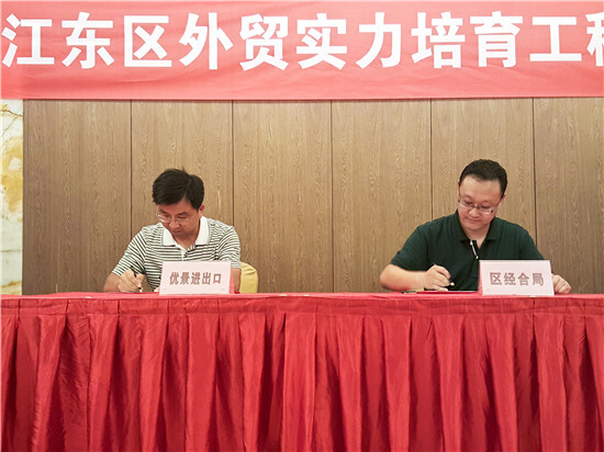 在外貿實力工程培育推進會上,江東區經合局、財政局、國稅局、地稅局、寧波海關鄞州辦事處、中信保寧波分公司負責人、各街道負責人及19家外貿實力企業負責人到會并交流發言。相關部門分別就企業關心的外貿政策力度、出口退稅額度和速度、水利基金返還、海關信用等級認證、出口信保額度等內容作了情況說明,并紛紛表示會后將與實力企業一一加強對接。我集團方總還與區政府簽訂了外貿實力培育工程協議書。