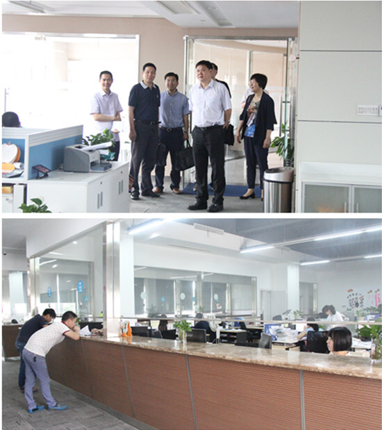 領導一行先后參觀了集團財務結算中心、各子公司業務人員辦公區域、集團產品展示中心和產品在線部。