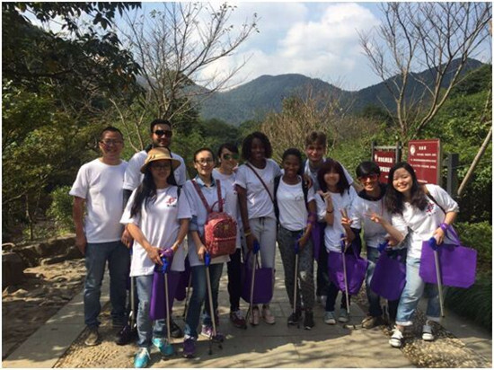 九峰山秀麗的風景也讓大家不時駐足拍照,清澈的水面、干凈的山景、歡快的笑容,讓取景變得如此容易、如此出彩。大家一邊撿垃圾,一邊賞美景,一邊交流國內外風俗趣事和求學工作感想,陌生人迅速變為老朋友,大家紛紛互相合影留念,互加微信,相約今后保持聯系。