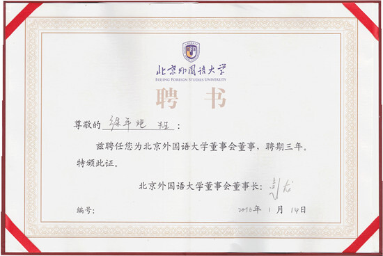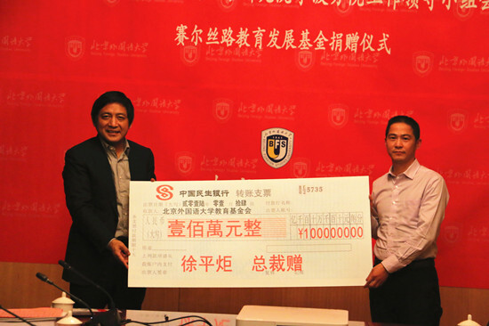 會(huì)議還舉行了“賽爾絲路教育發(fā)展基金”捐贈(zèng)儀式,由賽爾集團(tuán)捐資100萬(wàn)元,參與共建寧波海絲研究院。彭龍校長(zhǎng)與徐平炬總裁共同簽署了捐贈(zèng)協(xié)議,北外聘任徐總為學(xué)校董事會(huì)董事,彭校長(zhǎng)向徐總頒發(fā)了捐贈(zèng)證書(shū)、校董聘書(shū)和校董名片,徐總表示非常榮幸和感謝。