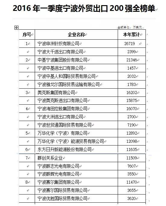 賽爾網訊 據寧波市商務委發布的今年一季度全市出口數據顯示,我集團在寧波注冊企業的出口額1.15億美元,同比增長明顯,排名居全市出口企業第8位。