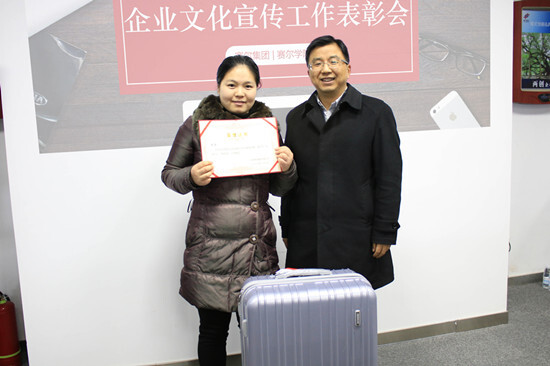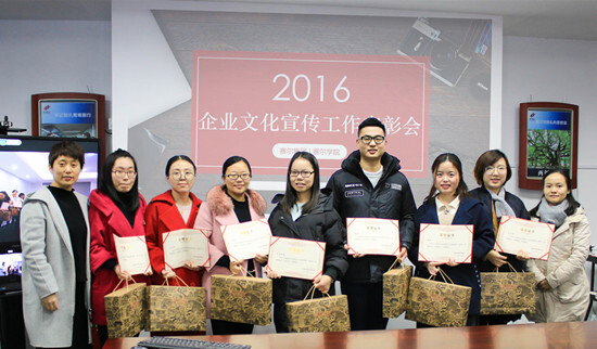 2016年是集團(tuán)企業(yè)文化宣傳工作扎實(shí)推進(jìn)的一年。各子公司、各部門向集團(tuán)季刊、中英文月報(bào)、周報(bào)、網(wǎng)站、微信等自媒體累計(jì)投稿486篇,總計(jì)40余萬(wàn)字,全年共刊發(fā)《賽爾志》4期、中英文月報(bào)各12期、賽爾周報(bào)52期、完成“賽爾人”稿件55篇,順利完成企業(yè)英文網(wǎng)站改版。因文化宣傳工作表現(xiàn)出色,賽爾國(guó)貿(mào)、綠時(shí)進(jìn)出口、優(yōu)景進(jìn)出口、優(yōu)勝國(guó)貿(mào)榮獲2016年度“企業(yè)文化宣傳先進(jìn)單位”稱號(hào),賽爾國(guó)貿(mào)傅麗君、優(yōu)訊進(jìn)出口俞飄飄等5人被評(píng)為“企業(yè)文化宣傳先進(jìn)個(gè)人”;優(yōu)景進(jìn)出口歐陽(yáng)圓圓、倉(cāng)儲(chǔ)物流部鄭曉亭等摘得年度“優(yōu)秀通訊員”獎(jiǎng)項(xiàng);賽爾國(guó)貿(mào)傅麗君還憑借對(duì)文宣工作的責(zé)任、熱愛和扎實(shí)的寫作功底,成為2016年度《賽爾志》優(yōu)秀欄目編輯。會(huì)場(chǎng)上大家用熱烈的掌聲,為所有積極參與文宣工作的小伙伴拍手叫好。