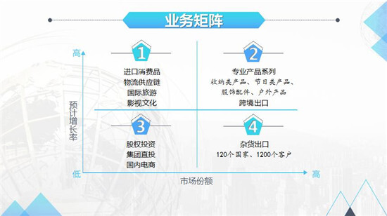 徐總表示,2017年經濟雖然面臨一些不確定因素,但當今世界已經充分全球化,大國之間的經貿合作你中有我我中有你,很難出現全面的貿易戰爭,國際市場仍有很多機會。集團各公司在綜合分析新老市場和新老客戶訂單等要素后,主動提出了不低于15%的年度增長目標,一些新生業務板塊增長目標更高,這些讓他也倍感鼓舞。當前集團業務矩陣布局合理,其中日用消費品出口市場遍布120多個國家(地區)擁有1200余重要客戶,業務發展比較穩定;精心挑選、深入打造的十余個專業產品系列已經形成較強的競爭力,跨境電商出口額連續兩年成倍增長,2017年出口額有望超過4000萬美元,這些都是集團未來非常重要的增長極;集團近年來相繼投資了消費品進口供應鏈、國際物流、定制旅游、影視文化等項目,也將是集團今后非線性增長邏輯的潛力項目;集團參與了多個股權投資基金,同時將深入研究和做外貿關聯的項目直投,并且也考慮自己探索有競爭力產品的國內電商等業務,這些都是集團業務矩陣的豐富與補充。今后,集團將繼續聚焦外貿主業,重視客戶價值,平衡業務邊界,在重視專業化的同時,也要打破行業邊界,積極構建“外貿+”生態圈,以實現未來繼續取得健康有機的公司發展。