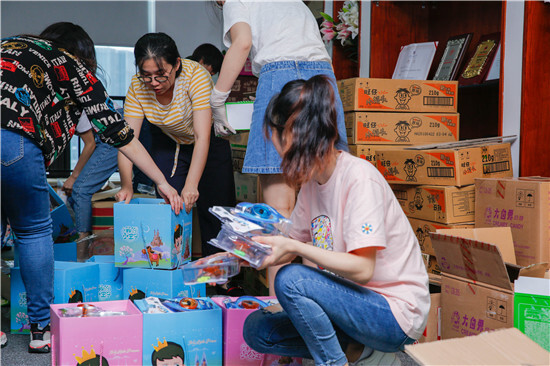 你們真的以為我們就送了一些小零食和小玩具嘛,不不不,我們送的是所有已經長大的孩子~對童年的回憶~也非常非常感謝我們后勤的小姐姐們~瞧大家~可是忙活了一天呢~