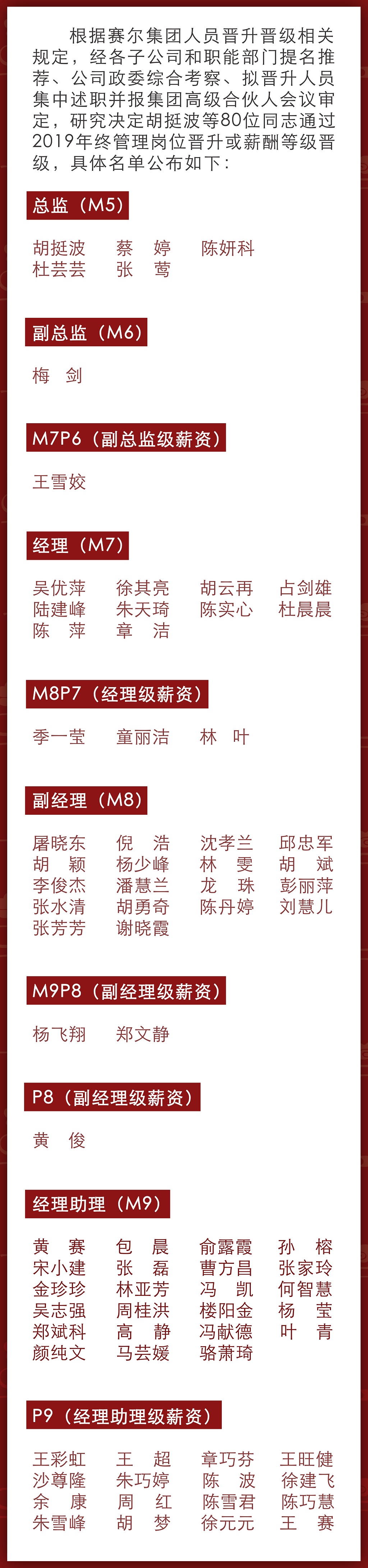 賽爾集團2019年終晉升榜單