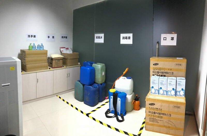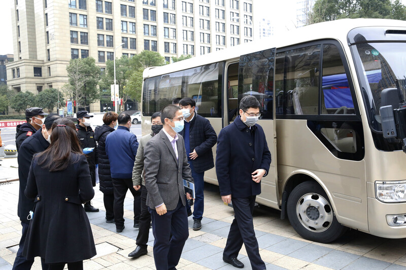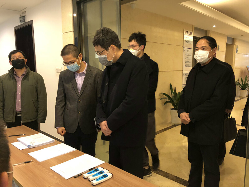 徐宇寧書記一行首先實地查看了集團防疫措施落實情況。徐平炬總裁簡要介紹了一日兩次測溫、兩次環境消殺、應急隔離以及防疫物資分類管理等安排,特別規定每天上午9點11分和下午1點33分各安排一次消殺,希望疫情早日散去。他強調,集團防疫小組對人員和環境的管理嚴格執行“橫向到邊縱向到點,不留死角不漏細節”的要求,確保分批復工能在安全可控的前提下有序推進。