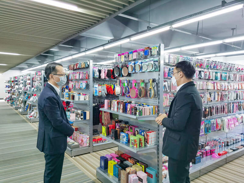 王健市長一行首先來到產品展廳參觀。錢天鋒副總裁介紹,賽爾集團自2005年開始在義烏落地注冊企業以來,依托義烏市政策環境優勢和中國小商品城市場集聚優勢,已發展成為義烏市一般貿易出口領先企業之一。產品涉及日用消費品上萬品類,市場覆蓋全球120多個國家地區,2019年賽爾集團在義烏屬地企業的出口總額近2億美元。參加本次調研的義烏市領導們對我集團依靠自身渠道資源優勢,大力引進全球客商來義烏市場采購適銷商品,為地方經濟作出重要貢獻表示充分肯定與贊賞。