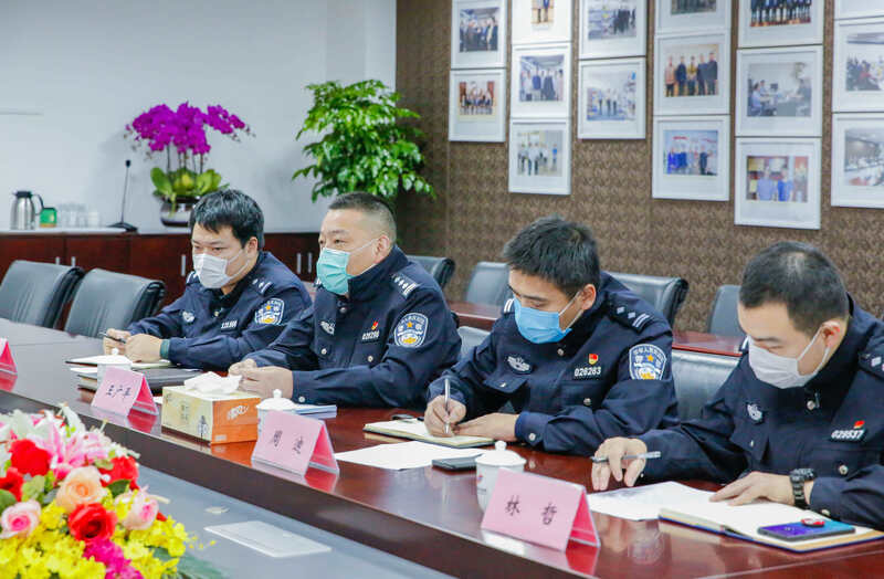 王廣平副支隊長在聽取介紹后,對我司疫情防控和復工復產工作的舉措成效表示肯定。王支表示,這次帶隊來賽爾走訪,是貫徹落實市公安局“大巡訪、三服務”精神,構建和完善公安駐企聯企的長效服務機制,踐行“聯絡員、協調員、宣傳員和指導員”四員任務的舉措之一。后續將及時了解疫情期間企業動態和訴求,盡可能協調解決企業遇到的相關問題,宣傳介紹市公安局服務企業復工復產30條措施意見等,同時希望通過實地走訪查看與分析研判,有效消除對口服務企業的防控隱患和存在風險。