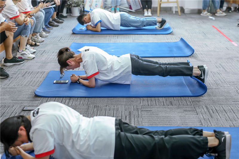 一飛沖天(垂直彈跳) 運(yùn)籌帷幄(毽子飛舞) 撐天拄地(平板支撐)