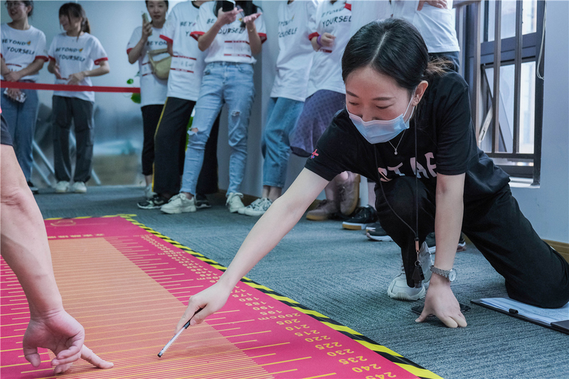 一擲乾坤(套環(huán)) 龍騰虎躍(立定跳遠(yuǎn)) 穩(wěn)如磐石(深蹲) 能屈能伸(彎腰過桿)