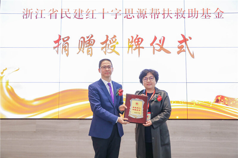 借此機(jī)會(huì),賽爾集團(tuán)向浙江省民建紅十字思源幫扶救助基金捐款200萬元,浙江省政協(xié)副主席,民建浙江省委會(huì)主委陳小平和浙江省紅十字會(huì)黨組書記、專職副會(huì)長陶競分別授予徐平炬董事長捐贈(zèng)和功德牌匾。