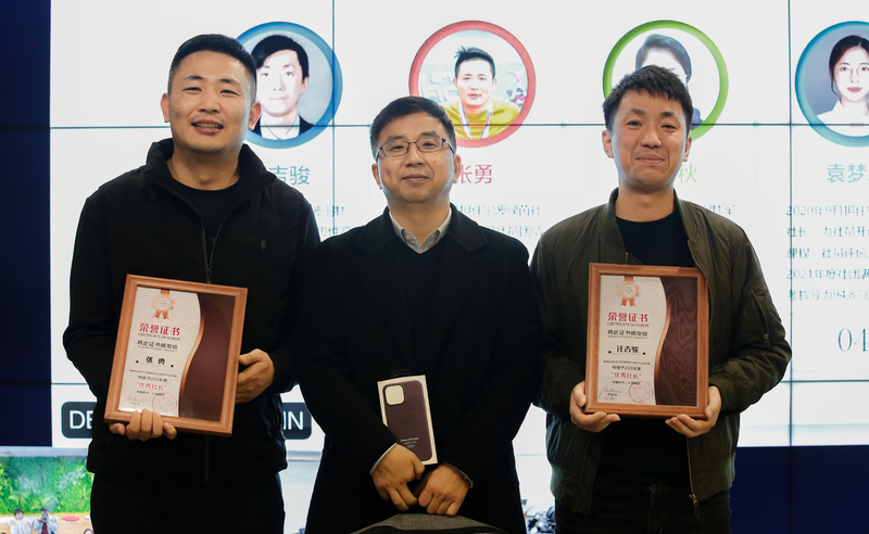 隨后,除成立不久的悅讀社外,其余九大社團的社長依次展開工作述職。各社團發言代表圍繞本社團工作亮點、社團現有問題及解決方案和社團工作思考和體會三個方面進行了全面回顧和總結。接著,會議根據社團滿意度調查評分結果,公布了4位2021年度優秀社長人選,分別是來自寧波羽林軍的汪吉駿、寧波綠茵社的張勇、義烏羽林軍的王艷秋和寧波愛樂社的袁夢思,與會領導依次為獲優人員頒發了獎狀和獎品。