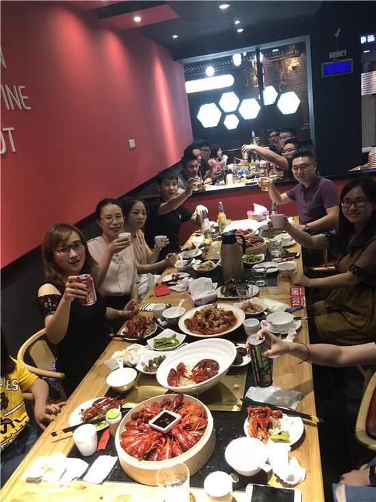 7月13日, 綠時公司召開了6月分享會和半年度會議,會上分析了上半年的業績情況,也明確了下半年的努力方向。會后,義烏和寧波小伙伴分別組織了公司半年度聚餐,不約而同地選擇了深得人心的小龍蝦盛宴。