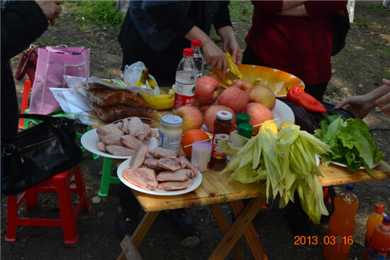 半個小時不到,豐盛的食材像魔術般的出現在了大家面前:水果,蔬菜,肉類,飲料各種調料一應俱全。