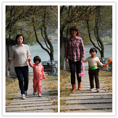 母女倆大手拉小手,一起走在石階上。會不會也勾起了你心中的某個回憶呢?