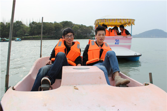 吃完中飯,大家隨后就來到了湖邊結伴坐船。腳踩劃船,別有一番趣味。當你劃到湖中央,你會看到在岸上完全看不到的風景。