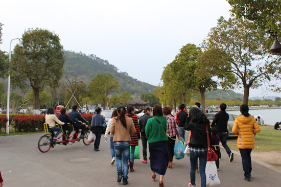 早上8點30分,迎著初晨的朝陽,伴著和煦的春風,大部隊在體育館門口集合后出發。大家熱情洋溢,一路上歡聲笑語,很快,我們就來到了目的地——東錢湖小普陀區。