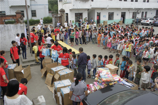 當天天氣異常悶熱,但絲毫沒有減少志愿者們的熱情。上午9:10分愛心捐贈活動正式開始,大家積極有序地給小朋友們分發物資。當天和我們一同前往的還有義務市弘寶行、義務市新生代協會、義務藍俊志愿者協會等志愿者。