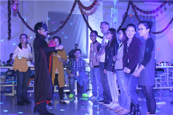 賽爾網(wǎng)訊 10月31日晚18:30,由義烏運(yùn)營(yíng)中心行政人事部舉辦的“萬(wàn)圣節(jié)狂歡Party”活動(dòng),在公司一樓餐廳內(nèi)隆重舉行。由于活動(dòng)前期宣傳造勢(shì)到位,派對(duì)現(xiàn)場(chǎng)布置神秘詭異,吸引了集團(tuán)上百名員工參與。更為難得的是,幾位前來(lái)洽談業(yè)務(wù)的外國(guó)客人也參與到了活動(dòng)中來(lái)。