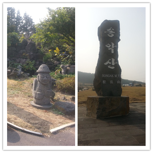 伴著秋日暖暖的陽光,小伙伴們又踏上了新一天的行程。民俗村的風土人情在這片島上保存最為完好,踏著玄武碎石的石子路,聽村民迎著鼓點唱出歌謠,摸著石頭爺爺的肩膀、嘴唇,看看路邊高高低低的辟邪塔,我們走走停停,歇歇看看,或談笑,或留影,完全沉醉在韓國風情里。