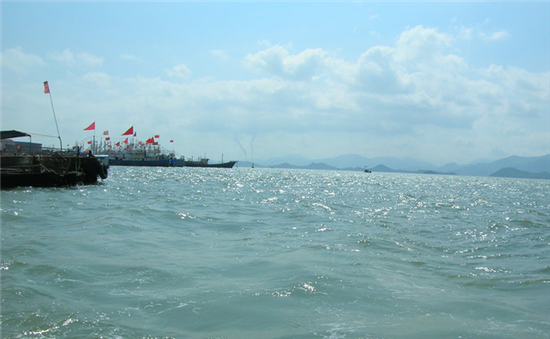 藍(lán)天、白云、海水、一排排的漁船,我們要出發(fā)啦。