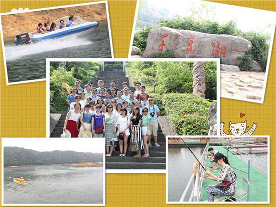 游玩的兩天里,陽光也足夠熱情,泛舟湖上,感受微風拂面,聽聽導游對千島湖的介紹,沿途的上島登山,一覽“千島風光”。體驗湖上飛艇的刺激;或者觀賞水上世界的精彩表演;或者兩人乘一只肥仔艇來組隊比賽;又或者執一魚竿,靜坐湖畔,等魚兒上鉤。晚餐品嘗了當地的特色“有機魚頭”,大家舉杯為了感謝隊友也好,犒勞自己也好,觥籌交錯總有不勝酒力之徒率先敗陣,大家倒也不勉強,更有“好隊友”上去幫扶一把。酒足飯飽后,各位“雀神”們開始清醒過來,“麥霸們”也覺得碧水湖畔,必須“高歌”一曲才可盡興。清晨醒來,拉開窗簾或靜立陽臺,欣賞波光粼粼的湖面,甚是有“面朝湖水,春暖花開”的情懷。