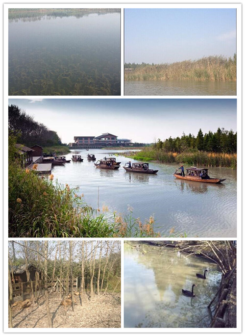 秋天的溱湖,景色一如傳說中那么優(yōu)美。湖水清澈,蘆花搖曳,櫓船游蕩,歌聲悠揚。濕地公園氣候濕潤,草食豐茂,很多珍稀動物長期在此居住,如天鵝、麋鹿等等。