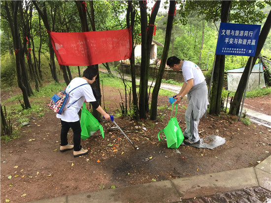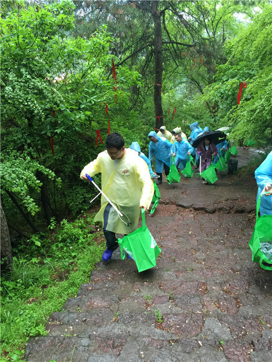 等我們到了半山腰,雨開始停了,大家脫下雨衣后心情就更加暢快了。身邊不斷有爬山的游玩者經過,紛紛對我們這種行為點贊,并表示下次也要邊清理垃圾邊享受爬山樂趣,增添游玩的意義。