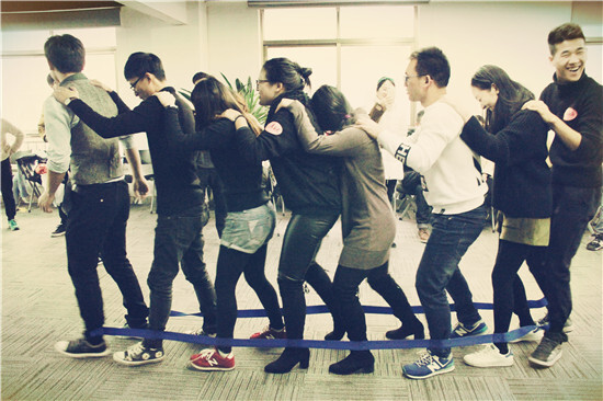 指壓板接力賽被冠以“不愿回憶之痛”的稱號,在一陣鬼哭狼嚎中,雙人合跳跳繩、旋轉的呼啦圈、忍痛背著妹子奔跑著的“猛男”、團隊首尾相接組成的人體長龍輪番上演,為這項游戲打上了痛并快樂著的標簽。