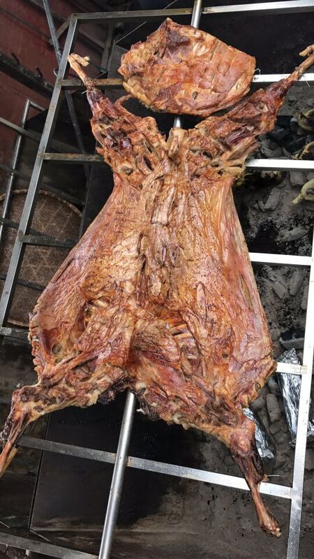 此次部門活動的重點就是烤全羊大餐。由于醫(yī)院要求必須空腹體檢,所以很多一早上都沒有進食的小伙伴們很快就開動了起來。主要負責烤烤全羊的是一位店里的大爺,那手法甚是嫻熟,一頭羊被烤得可謂是色香味俱全,再加上碰到一群已經(jīng)餓的前胸貼后背的小伙伴們,烤全羊一上桌就被大家一掃而空。之后再配上當?shù)氐霓r(nóng)家樂美食,一頓美味的大餐很快就在大家的歡聲笑語中被消滅了。