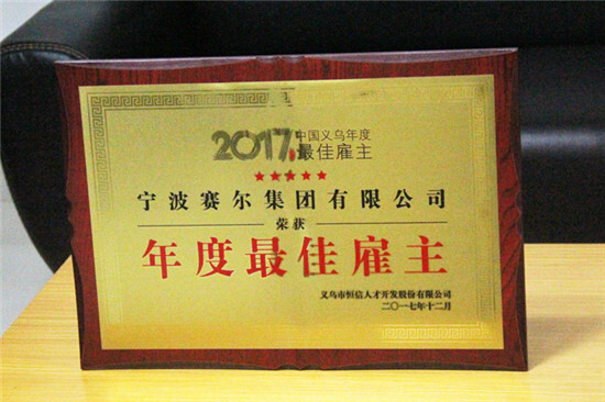 在頒獎典禮上,賽爾集團同時摘得“2017年義烏年度最佳雇主30強”及“最具發(fā)展?jié)摿椭?rdquo;兩項殊榮。今年是賽爾第三年蟬聯(lián)最佳雇主,成為義烏雇主品牌的標桿企業(yè)之一。