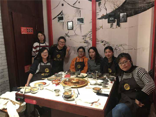 約定的當天下午出了一些小意外,小葉的貨急需返工,兩個組的姑涼們毫不猶豫地一起去倉庫幫忙。經過一番熱火朝天的努力后,全員終于在8點半集合來到義烏之心。疲憊和饑餓讓姑涼們都放下了矜持,大快朵頤,大家拉拉家常,聊聊八卦,笑聲不斷。