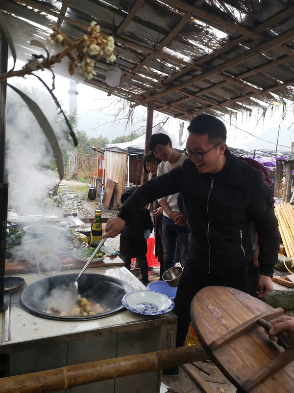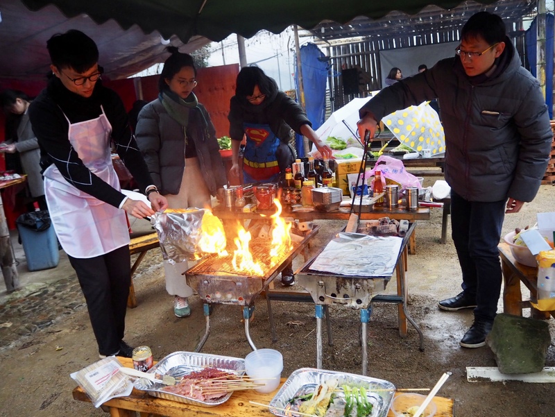 還未達(dá)到目的地,大家就迅速成立了“廚房真功夫組”、“BBQ組”、“手工餃子組”、“水果組”,摩拳擦掌,躍躍欲試,準(zhǔn)備在戰(zhàn)場上開辟新天地。由張旭東、盧堂翠帶領(lǐng)的“廚房真功夫組”全都是廚藝了得的大廚,做出了姜汁皮蛋、白切雞、清蒸鱸魚、土豆燉牛肉等一道道色香味俱全的美味佳肴。每出一道菜,大家都蜂擁而上,一掃而光。由劉珊帶領(lǐng)的“BBQ組”都是燒烤達(dá)人,只要高喊一聲“烤好了”,覓食的人群們就會聞聲而來;“手工餃子組”出鍋后的香味讓人垂涎欲滴;“水果組”的手藝無比驚艷,有千禧果制作的兔子,有哈密瓜自成一體的水果拼盤。還有花費(fèi)了近三個小時的烤全羊作為壓軸隆重登場,在即將出爐的那一刻烤全羊周圍圍滿了人群,共同等待品嘗美食。