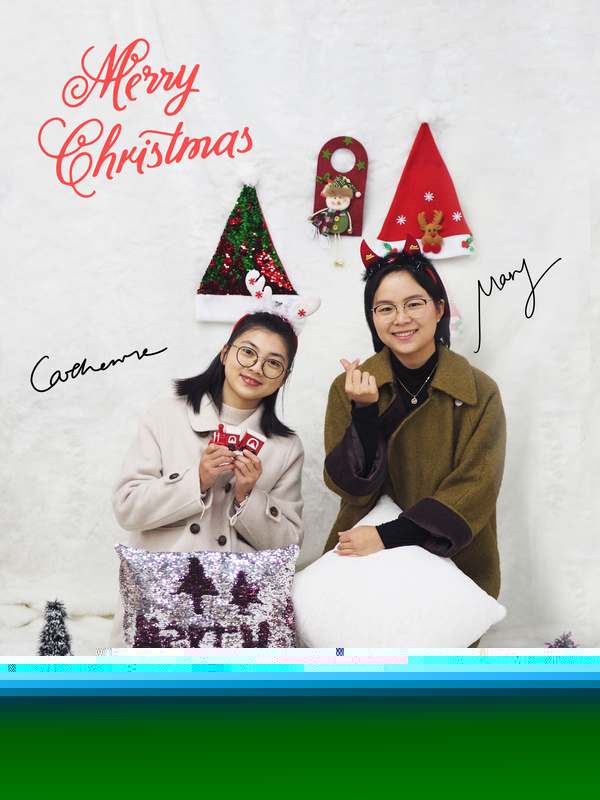 我們利用圣誕花環、圣誕樹、圣誕襪、圣誕擺件等各類節日裝飾品,以白色絨布為背景,打造了一個溫暖喜慶的布景。隨后按照公司各個小組的順序,以重要客戶為對象,進行不同的序列組合拍攝團體照。另外,我們還收集了每一位業務員的英文電子簽名,標注在每個人照片旁邊,以便給客戶留下更深刻的印象。拍完照之后,我們在上面加上了祝福語和親筆電子簽名,最后制作出了一張張別出心裁的精美圣誕節專屬賀卡。