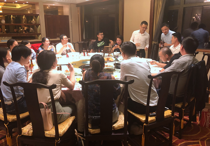 錢總因甚是思念大家,早早地就通知大家晚上要暢聊歡聚一堂。16日下班后我們三三兩兩一輛車陸續抵達,全員到齊后,大家舉杯共同慶祝這相聚的時刻。