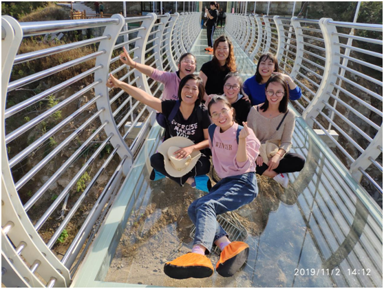 這一天,天氣非常給力,艷陽高照又夾雜著絲絲秋風(fēng),大家輕裝上陣相約于義烏赤岸西海龍山風(fēng)景區(qū)。走一走讓人雙腿發(fā)抖的玻璃棧道,蕩一蕩令人毛骨悚然的高空秋千,擺一擺美美的POSE,拍一拍沿途的風(fēng)景,一個(gè)下午好不愜意呀!