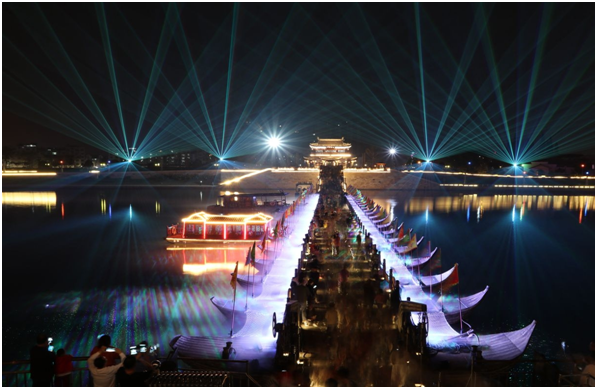 晚飯過后,我們轉(zhuǎn)戰(zhàn)去了義烏佛堂古鎮(zhèn)。正值佛堂一年一度的十月十民俗文化節(jié),佛堂老街熱鬧非凡,人流穿梭不息,老街上賣的各種小玩意兒、小擺件也讓人不由自主地懷念起童年的快樂時(shí)光。江邊燈火通明,人頭攢動(dòng),大家都在欣賞浮橋上的3D燈光秀,流光溢彩,美不勝收。