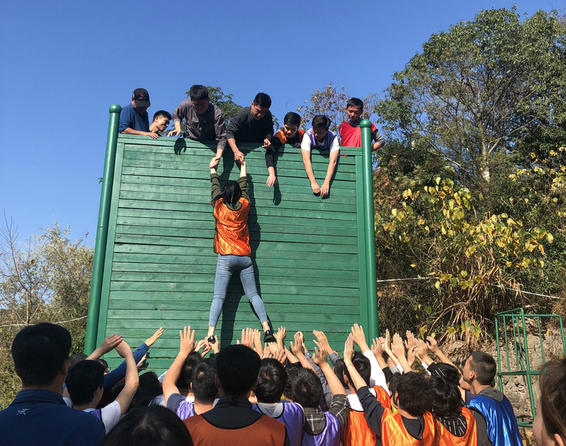 第二天,每個團隊領到了畫布和繪筆之后開始了緊張的工作,大家協作配合,互相幫助,最終每個賽爾新人都在這塊大畫布上留下了自己的手印。下午4米的高墻更是將我們緊緊連在一起,墻下是堅固的人梯和大家雙手舉成的保護墻,墻上是一雙雙有力的雙手拉住每一位翻墻的伙伴。墻上墻下萬人成眾,團結一心,秉持一個也不放過的原則,最終提前完成任務。