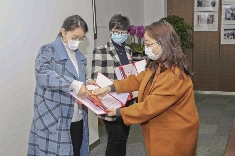 大會(huì)的第二項(xiàng)議程是2019年優(yōu)秀黨員和優(yōu)秀黨組的表彰,賽爾集團(tuán)黨支部朱玲書記和義烏支部徐生科書記分別為周玲燕、周慧、王鴻雁三位同志以及第三小組頒發(fā)優(yōu)秀黨員和優(yōu)秀黨組的榮譽(yù)證書和獎(jiǎng)金。