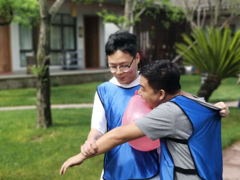 “急速60秒”考驗知識儲備能力,最后這小小的桌子都擋不住這發散開去的思維,大家直接在地上鋪開卡片發揮起來。“產供銷一條龍”比拼超強肺活量,各隊忙著吹氣球、運氣球、綁氣球,你來我往,飛奔的場面異常激烈。