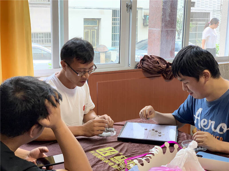 短暫休整后,大家各自組隊開始戰(zhàn)斗,有 “國粹”比賽,有五子棋、象棋等棋類項目,有“力爭上游”“環(huán)環(huán)相扣”等新式比賽,期間還穿插了“畫畫傳遞猜詞”“害你在心口難開”“交換名字”等趣味游戲,好不熱鬧。