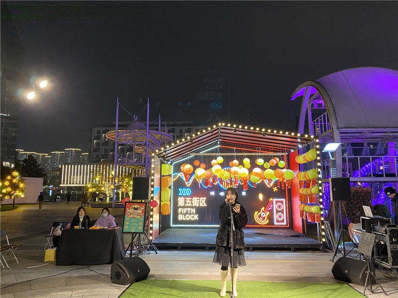 3月12日晚,愛樂社成員來到位于文化廣場的橙邑集市,趕赴一場早已約好的“音樂甜點(diǎn)之旅”。晚風(fēng)夾雜著些微水汽,穿行于飽足人兒的閑話與談笑中。身后搭起的方寸地界里,絡(luò)繹不絕地往來著猜燈謎的人們。階前劃出一片人造草坪,暖橘色的光似一片薄薄的輕紗籠罩,一支麥克風(fēng)靜默地立著、等待著。一首 《I don’t want to talk about it》拉開了本次街唱活動(dòng)的序幕,吃瓜群眾漸漸圍攏,開始的羞澀膽怯在伴唱與掌聲中慢慢化為了動(dòng)情與坦然。小朋友們是最忠實(shí)的“鐵粉”,有停下“座駕”駐足聆聽的,有主動(dòng)上前伴舞的……我們的頭上懸著星星,他們的梨渦里也藏著星星。13首歌曲串聯(lián)起了如夢似幻的一小時(shí)表演,歌者與聽眾的心里鼓脹著暖洋洋的共鳴。