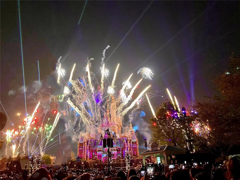 在夜晚觀賞一場煙火秀是迪士尼的必選項(xiàng)目,看著五彩的煙花在天空中綻放,彼時彼刻的心靈得到了治愈,一天的疲憊感也在這一瞬消散。