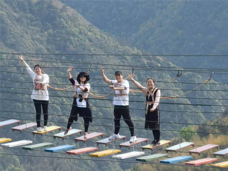 云霧繚繞的盤山路,香甜可口農(nóng)家飯菜,一決高下的乒乓球?qū)Q,拄著拐杖爬山的波哥,都是此行的焦點(diǎn)。讓人印象最為深刻的是通過(guò)高空筏道的集體任務(wù),在大家的共同努力和互相幫助下,大家順利完成任務(wù)。這個(gè)團(tuán)隊(duì)項(xiàng)目讓我們真正體會(huì)到了有些事情單憑個(gè)人力量是根本無(wú)法完成的,只有發(fā)揮團(tuán)隊(duì)合作精神,挖掘隊(duì)內(nèi)每個(gè)人的潛力,才能讓團(tuán)隊(duì)力量最大化。雖然戶外拓展的時(shí)間較短,但從這些拓展項(xiàng)目中,我們學(xué)會(huì)了如何挑戰(zhàn)自我、激發(fā)潛能,如何有效分工、團(tuán)隊(duì)協(xié)作,如何進(jìn)行時(shí)間管理。