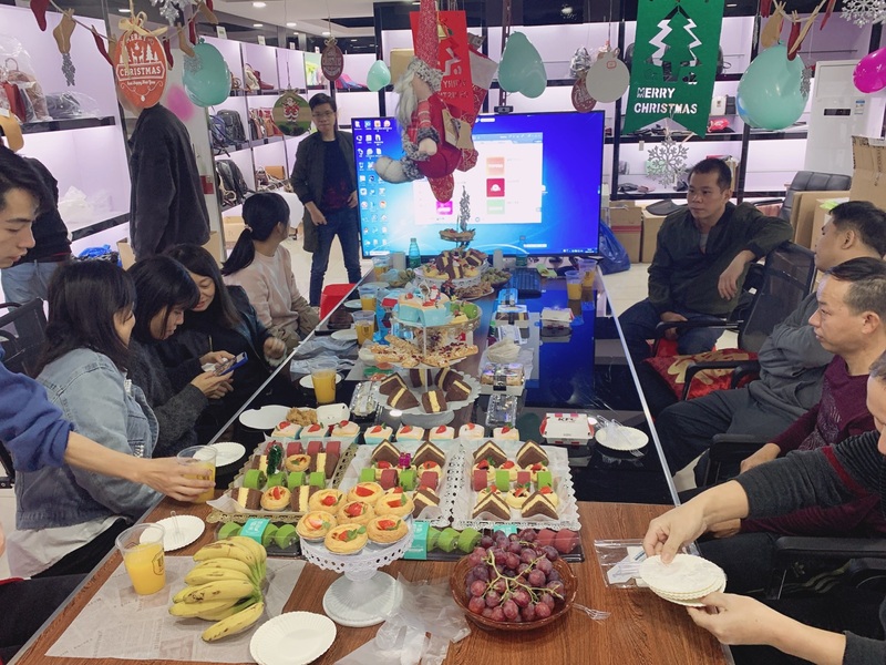 12月25日下午,廣州辦全體同事精神抖擻地進入活動現場,個個喜笑顏開,像個孩子似的享受各種美食和水果及炸雞。大家相互干杯和挑選美食,盡情地享受節日的開心時光,對公司今后發展也更加有信心?;顒幼詈?,大家通過合影形式記錄下即將過去的2021年,為公司送上最誠摯的祝福。