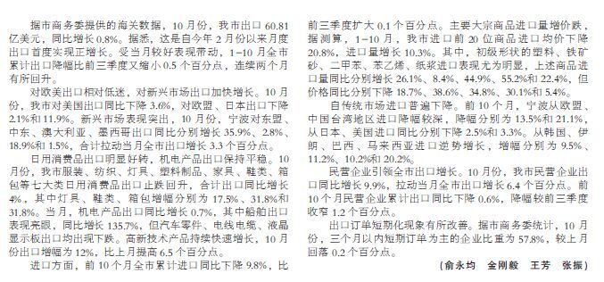 前10個月寧波外貿出口降幅繼續收窄