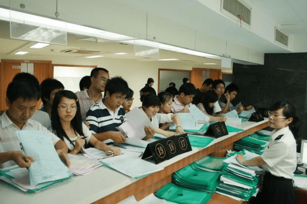 以前通關窗口排隊等待的人流