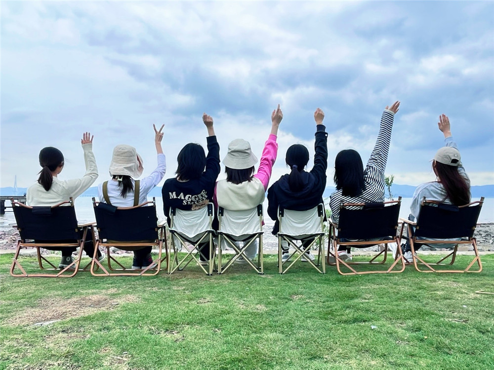 8個志同道合的小伙伴各自領走任務,做起了自己擅長的事情,現場一片熱鬧樂曲:美食大廚將食物放在烤架上發出的滋滋聲、百萬攝影師不同機位記錄美好瞬間的咔嚓聲,大伙散落一地的笑聲,伴隨著音樂聲,將露營的氛圍烘托到了頂點。山河平靜遼闊,我們在岸邊蕩著秋千,感受著清新的海風,盡情投入自然的懷抱,享受隨性的美好假日。瑣碎的日常、時間的束縛,都隨風而逝了。